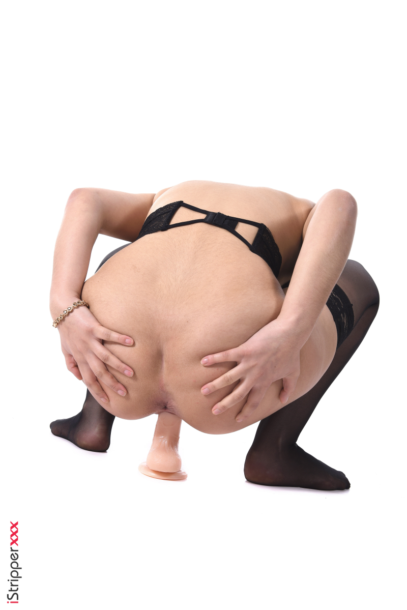 Ava Black is looking very hot and sexy in the "Outstanding" striptease scene with her gorgeous black lingerie set. The smile on her face is so contagious as she shows off her body for the audience.