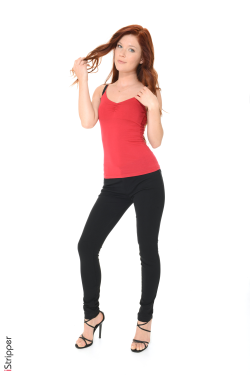 In the captivating "Heat Stroke" striptease, Mia Sollis is seductively posing in a fiery red top and sleek black pants with high heels as she tantalizingly teases with a gentle tug on her top, hinting at the tantalizing delights that are yet to come. With a mischievous glint in her eye, the performer playfully arches her back, accentuating her curves and inviting the audience to join her on this exhilarating journey of sensual exploration and unrestrained passion.