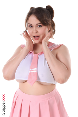 This "No Need A Lifebuoy" striptease scene begins with the stripper named Peachy Alice wearing a cute schoolgirl outfit that consist of a white sailor top with a pink skirt and a pair of platform heels. She teases the audience by taking out a lollipop while holding her pigtails while in the second picture looks surprised with her hands on her cheek.