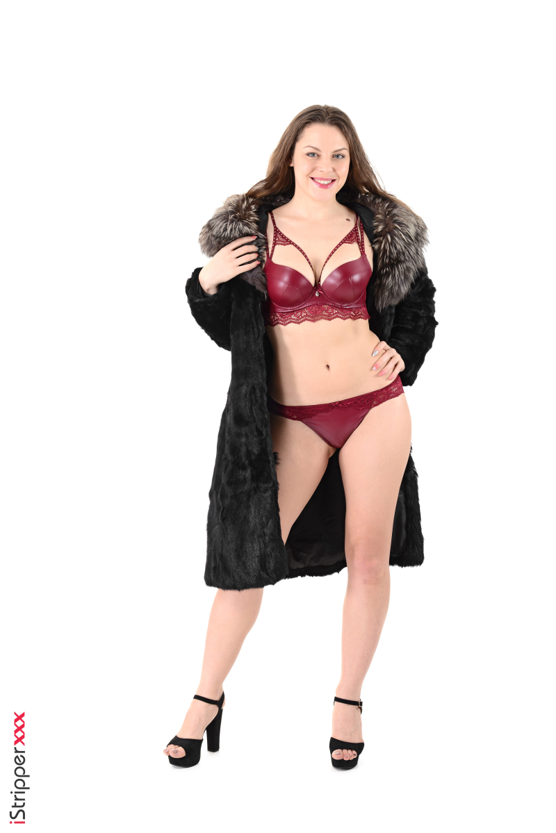 Oh wow, Sofia Curly is stripping her clothes in the striptease scene "Living In Luxury", starting off by wearing a luxurious fur coat along with a maroon colored lingerie set. She looks at the camera as she is taking off her lingerie, and her sensual act is definitely a spectacle that you would not want to miss out on.