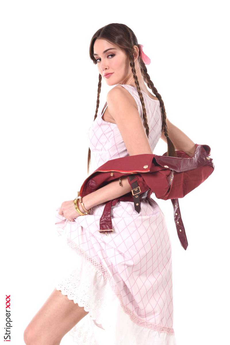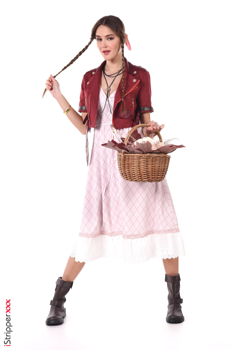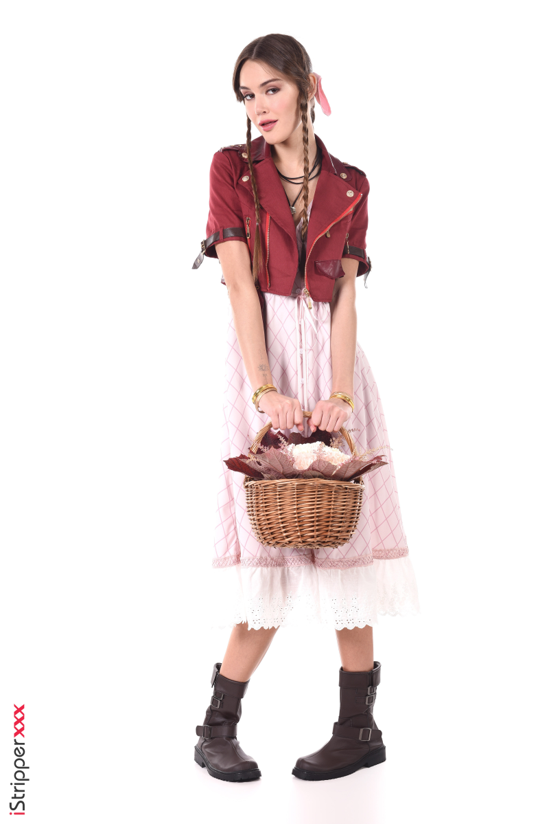 Sonya Blaze is dressed as an innocent flower seller and starts teasing with the flower basket and the red jacket with a playful attitude for the striptease scene called "Sexy Flower Peddler". She drops her dress and uncovers her perfect body for you to enjoy and admire.